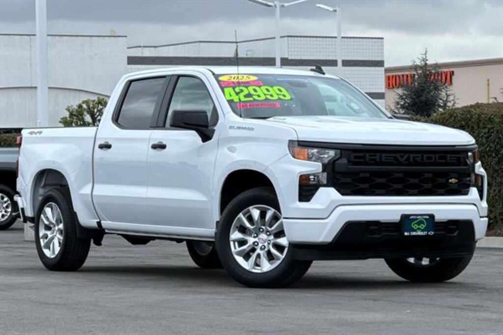 CARFAX One-Owner Clean CARFAX Summit White 2025 Chevrolet Silverado 1500 Custom California Emissions Requirements, Chevytec Spray-On Bed Liner, Deleted Mobile Service Plus, Front License Plate Bracket 17/20 City/Highway MPG LOW PRICES EVERYDAY!